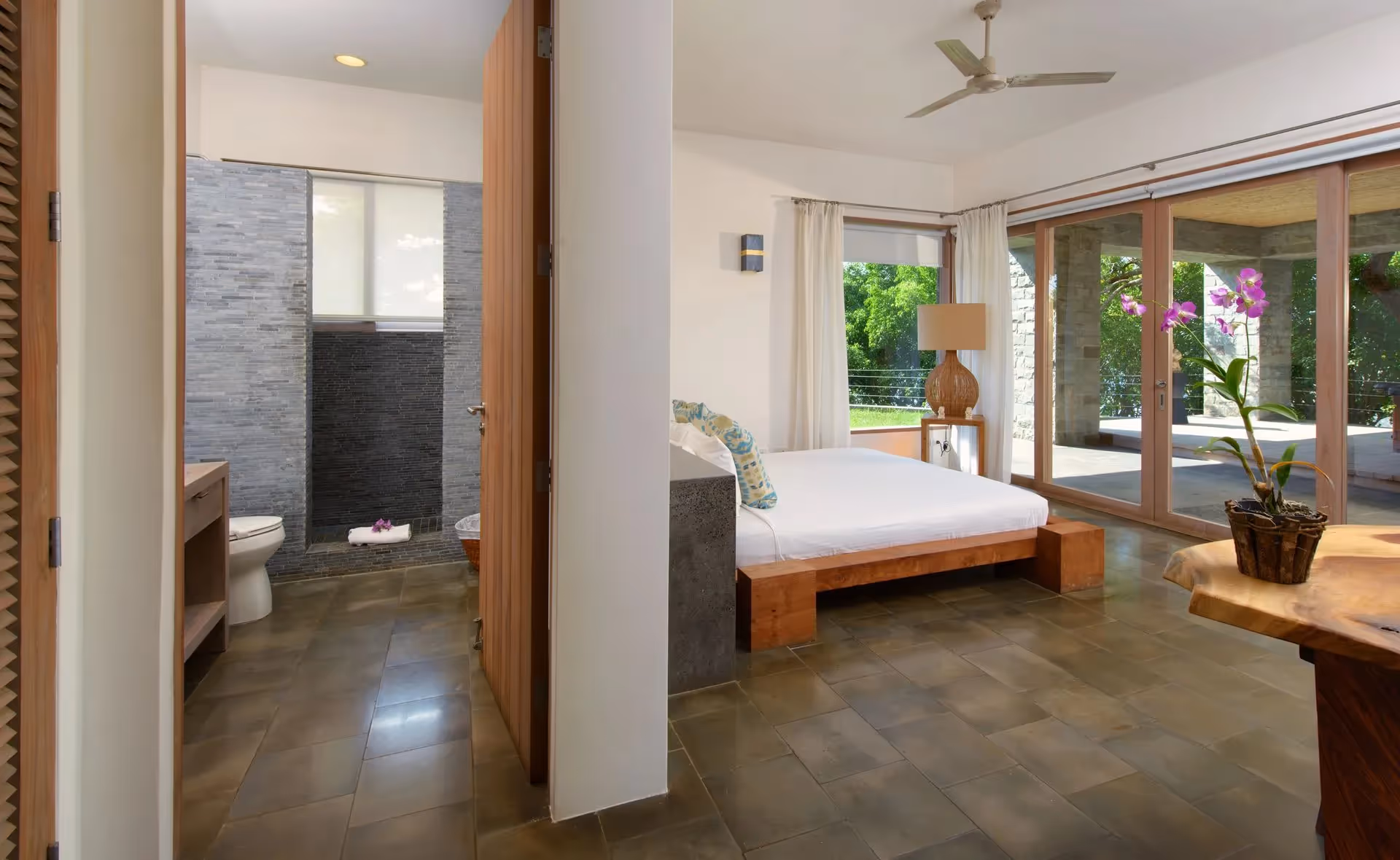 180-degree views of Tamarindo Bay from multiple vantage points across the villa’s open-air design