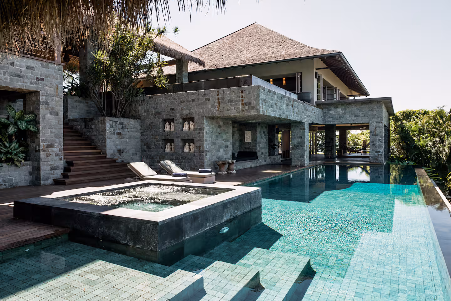 A sprawling 15,000 ft² Balinese‑inspired villa offering eight sumptuous en‑suite bedrooms for up to 13 guests. Wake to sweeping Pacific and estuary views, linger over breakfast buffets, and luxuriate in two infinity pools and a Jacuzzi. Interiors blend indoor‑outdoor living—vaulted ceilings, ironwood dining, media and yoga rooms. A dedicated concierge, housekeeping, grocery pre‑stocking, optional chef, and bug‑repellent mist system ensure effortless refinement in this tropical escape.