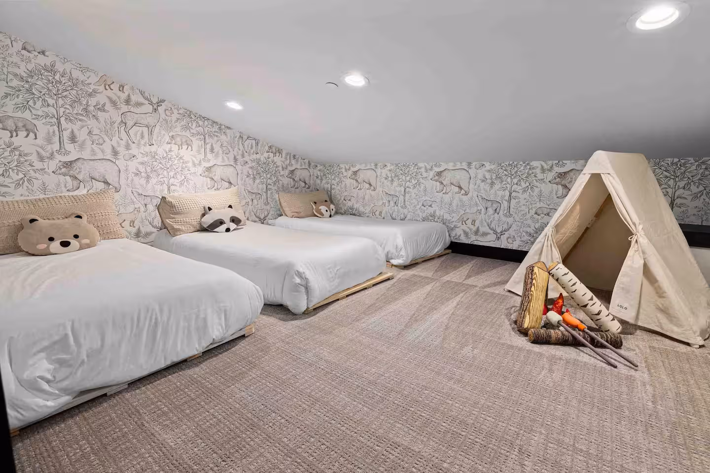 From a heated saltwater pool to outdoor firepits, the ultimate home gym, cinematic theatre room, and even its own speakeasy with tons of games, this retreat has it all.