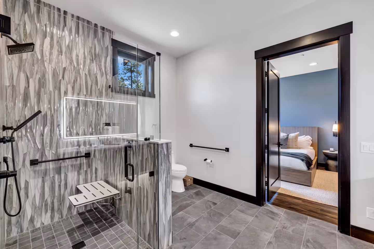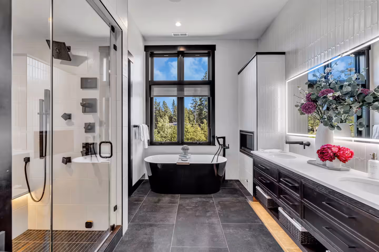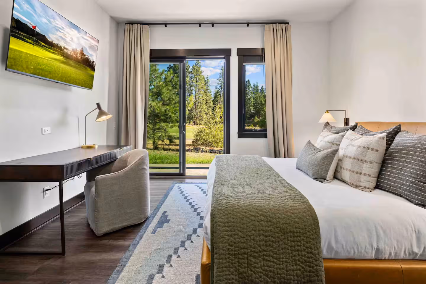 The Cascadia House is a luxurious lodge near the mountains designed for unforgettable group getaways. The open-concept great room boasts vaulted ceilings and floor-to-ceiling windows that frame stunning forest views. Host your meetings in the great room or present in the movie theatre, then head down to the private speakeasy for games and lounging. Afterwards, unwind in the saltwater pool or fireside on the patio while taking in the wilderness.