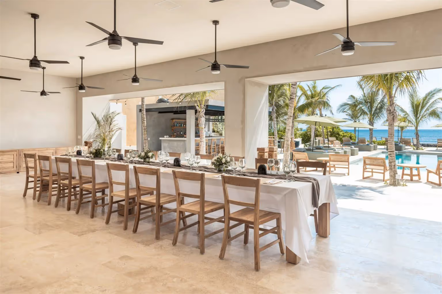 A gorgeously modern beachfront villa situated within the sandy shores of a private community in Puerto Aventuras. Sleek and sophisticated, this fully staffed villa is designed for elevated living. Featuring 12 serene suites with private terraces, plush bedding, and spa-like amenities. A sprawling oceanfront pool deck, alfresco bar, and direct beach access set the stage for an unforgettable luxury retreat.