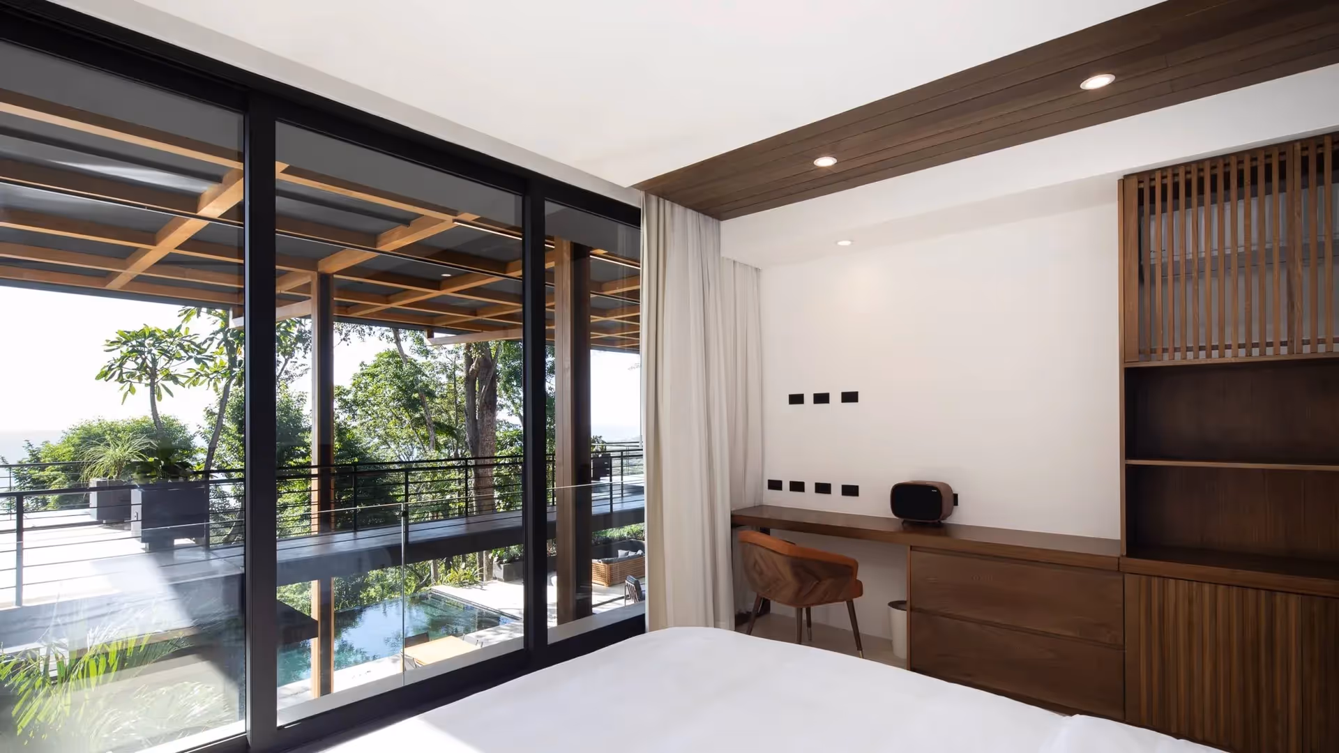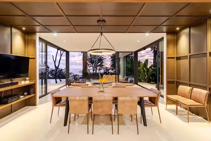 Por Dicha, meaning “fortunately” or “luckily”, is perfectly embodied through this stunning property of two side-by-side villas. Expansive, floor-to-ceiling windows frame sweeping views of the jungle and ocean, while modern design and contemporary amenities blend seamlessly with Costa Rica’s lush, calming surroundings. Between strategy sessions, take a dip in the show-stopping infinity pool and enjoy team bonding in one of the most beautiful places on earth. You'll certainly feel lucky to be here.
