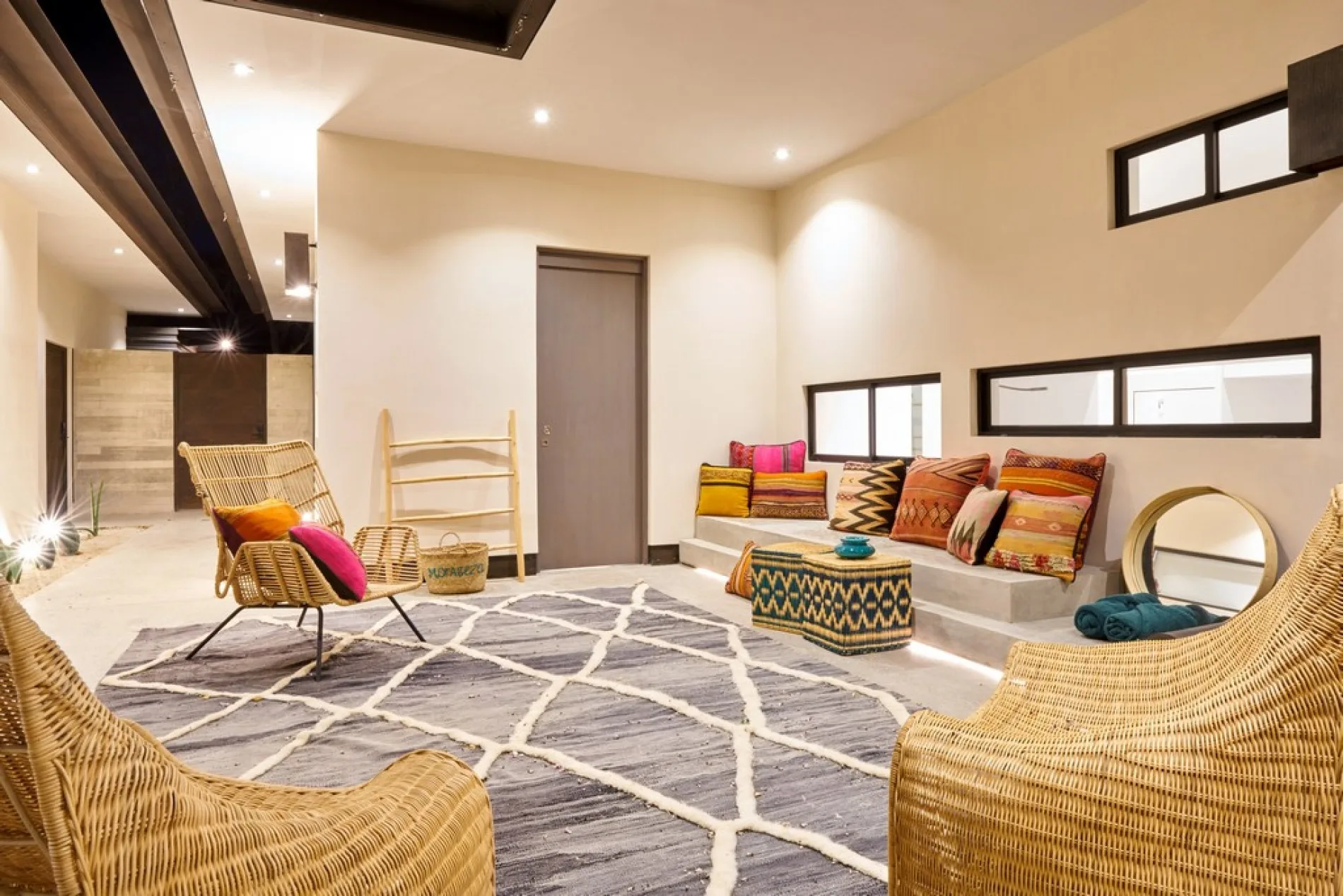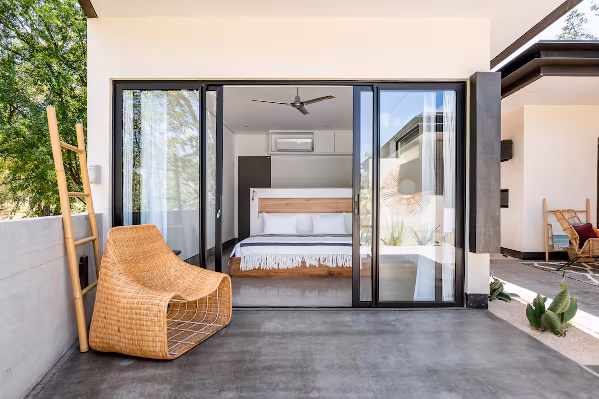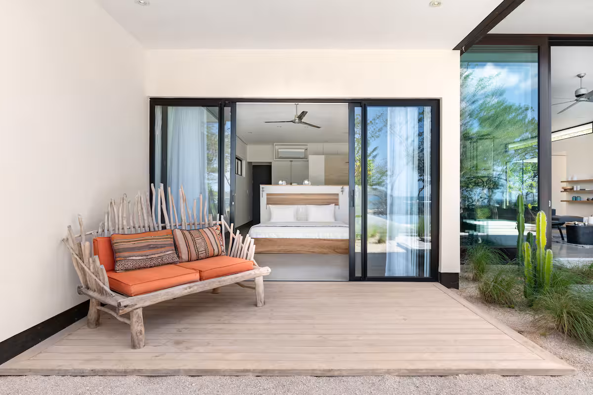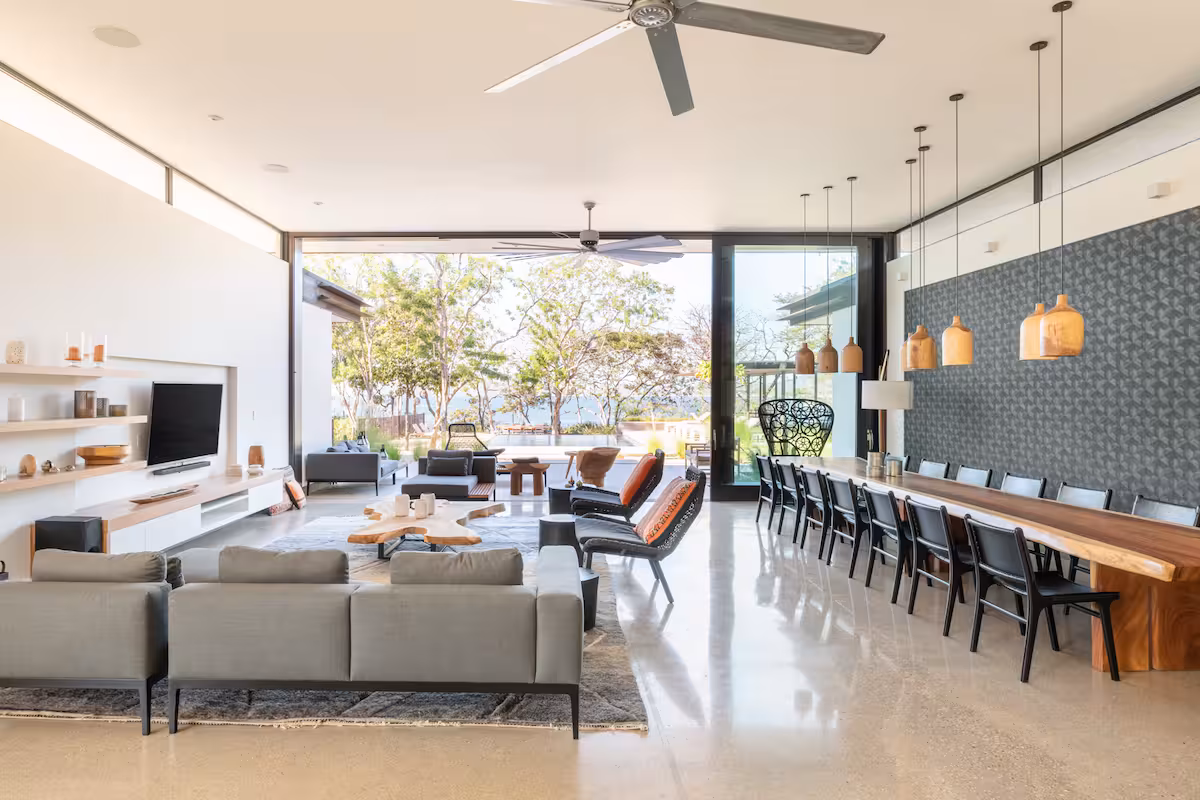 Villa Pura Vida is a luxurious 8-bedroom, 8-bathroom beachfront villa in Tamarindo, Costa Rica, designed for relaxation and entertaining. The villa features a sleek, modern design with natural wood accents, multiple lounge areas, a private pool, and direct beach access. Ideal for groups, the villa includes daily housekeeping and chef services, offering a high-end tropical escape just a short walk from town.