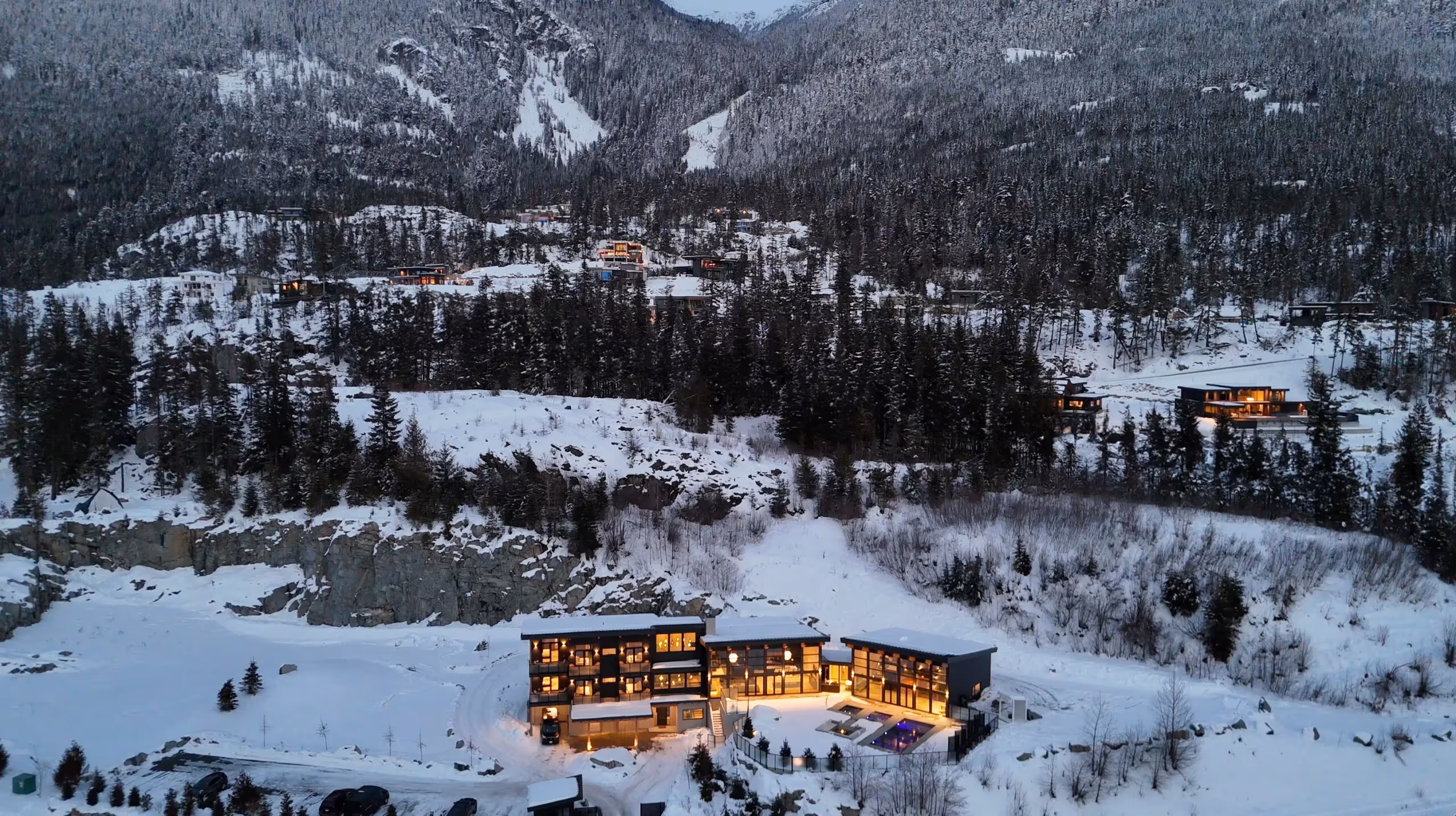 Whistler Lodge is an exclusive-use, 12,000 sq ft luxury retreat designed for groups of up to 26 guests, offering 10 king ensuite bedrooms (plus bunk beds), an 18-seat private theatre, games room, wine cellar, and a full great room for dining and lounging. Adjacent to a Nordic-inspired 3,000 sq ft private spa—with heated pool, sauna, steam room, gym, yoga studio, massage rooms, and outdoor firepit—guests also benefit from dedicated on-site staff, executive chef, chauffeur shuttle service, and concierge amenities.